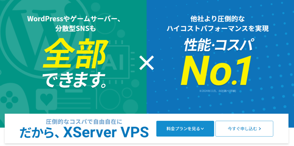 Xserver VPSではパルワールドのサーバーを簡単に立てる機能があります。申し込むだけですぐに遊ぶことができます。
